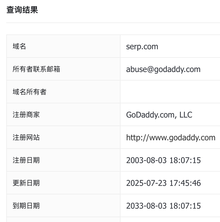 目前SERP.com用于重定向至SerpAPI.com,既保留了原有域名的用户基础,又通过短域名降低了营销传播成本。这种 “主域 + 品牌域” 的组合策略,已成为科技企业域名布局的主流模式。对于SerpAPI这类专注于提供搜索引擎结果数据API服务的企业而言,拥有 SERP.com不仅是品牌资产的升级,更是对其核心业务的高度概括与背书。